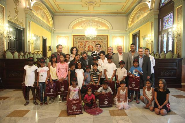 L’Alcalde de Lleida, Àngel Ros, acompanyat del tinent d’alcalde Josep Presseguer i dels regidors M. Rosa Ball, Jesús Castillo, Joan Gómez, Josep Barberà i Oriol Yuguero, i de la presidenta de l’Associació d’Amics del Sàhara de les Terres de Ponent, Antònia Pons, han rebut aquesta tarda al Saló de Plens de la Paeria una vintena de nens i nenes sahrauís, acollits per l’Associació d’Amics del Sàhara de les Terres de Ponent i per diverses famílies de la ciutat de Lleida. L’Ajuntament de Lleida subvenciona aquest projecte amb 8.800 euros, que sufraga les despeses ocasionades pels vols, transport i estada a la ciutat de Lleida.