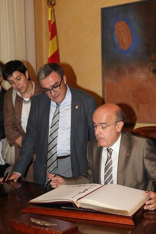 El paer en cap, Àngel Ros, ha presidit la recepció al conseller de Salut de la Generalitat de Catalunya, juntament amb el Delegat de la Generalitat a Lleida, Ramon Farré.