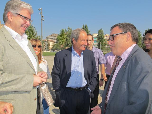 L’alcalde de Lleida, Àngel Ros, i el director general de Fira de Lleida, Oriol Oró, han donat la benvinguda al secretari general del PP i diputat al Parlament, Jordi Cornet, a la 57a edició de la Fira de Sant Miquel i la 26a edició d’Eurofruit, el Saló Internacional del Sector de la fruita. Ros ha desitjat una bona fira al diputat popular, qui ha visitat el recinte firal acompanyat de diversos càrrecs polítics locals del seu partit.