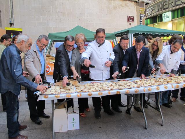 Per celebrar el Dia del Pa, que tot i ser demà s’ha traslladat a dissabte per aprofitar l’afluència de públic a l’Eix Comercial, el Gremi ha ofert una degustació de pa de ronyo amb oli d’oliva, per a mil persones. A més, es podien adquirir vuit varietats de pa de les diferents regions. El president del Gremi, Manel Llaràs, ha qualificat el pa com una marca d’identitat del territori i que també és part de la cultura. A més, l’ha defensat com a saludable i ha dit que forma pari de la dieta mediterrània. Una afirmació que també ha fet el president de la Federació de Cases Regionals, Cosme García. Llaràs ha lamentat el descens del consum de pa, que a Catalunya ha baixat un 9% respecte l’any passat.