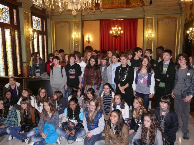 Un grup de 34 alumnes de l’escola Marista Saint Laurent de Lagny Sur Marne, de França, han visitat aquest migdia la Paeria amb motiu de l’intercanvi lingüístic que estan fent aquests dies amb el col·legi Montserrat de Lleida. La tinenta d’alcalde Montse Parra els ha rebut oficialment al Saló de Sessions i els ha donat la benvinguda a la ciutat. Parra els ha explicat diverses referències a l’Ajuntament, com la denominació de Paeria, el tapís que presideix la sala i que al·ludeix Ramon Muntaner o el retaule de la Verge dels Paers.