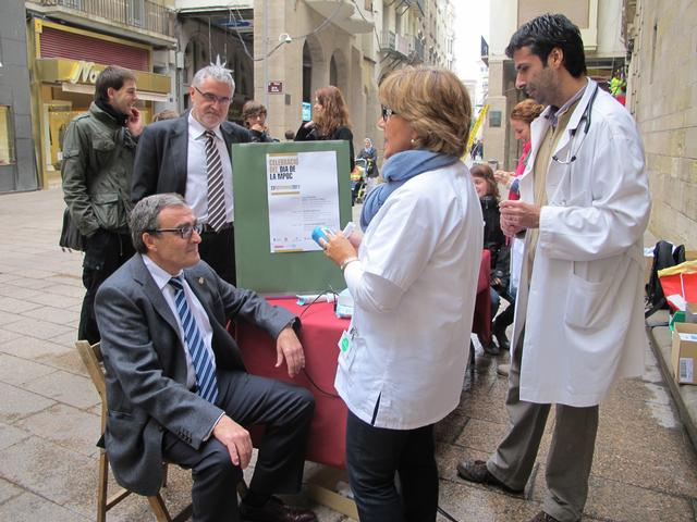 El paer en cap ha visitat la taula informativa que s'ha ubicat a la plaça de la Paeria