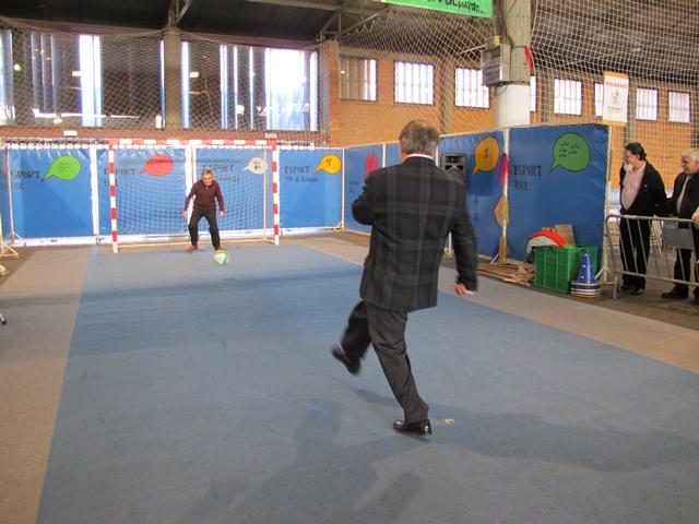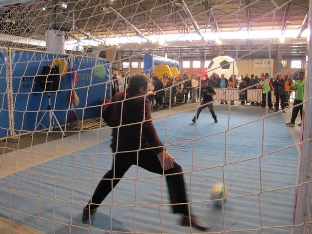 L’alcalde de Lleida, Àngel Ros, ha fet de porter per una causa benèfica a l'espai del Gol Solidari, que un any més té presència a Cucaesport. L’alcalde s’ha equipat amb els guants de porter per aturar els gols que xutaven els nens i les nenes que participaven en aquesta proposta solidària.
