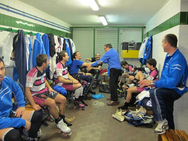 L'alcalde de Lleida, Àngel Ros, acompanyat dels regidors Txema Alonso i Bea Obis, ha seguit el partit des de la llotja del pavelló municipal Onze de Setembre, amb el president del club, Ernic Duch. Després, ha baixat al vestidor per felicitar l'entrenador i tot l'equip per la victòria aconseguida.