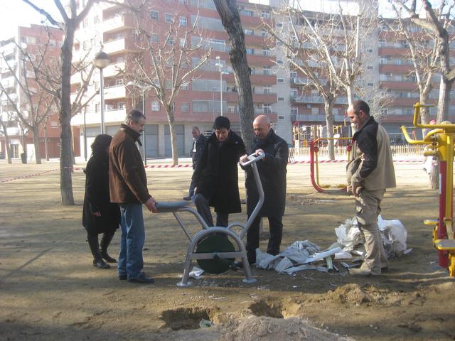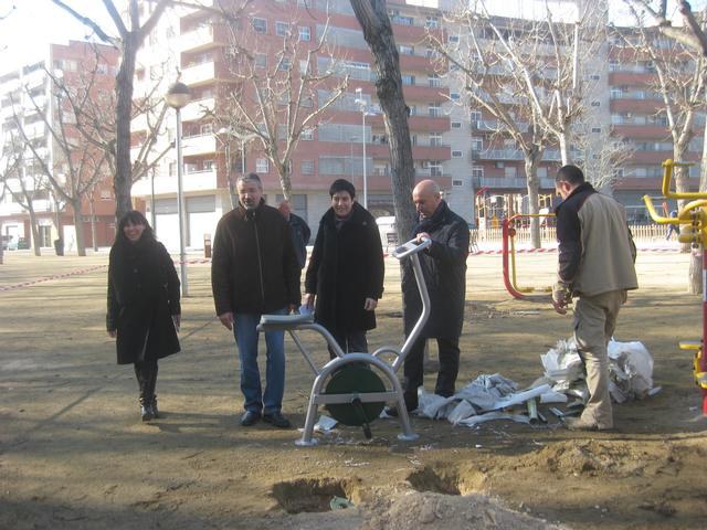 L’actuació consisteix en la col·locació i instal·lació d’aquests sis aparells que inclou: esquí de fons (entrena les extremitats inferiors i enforteix els músculs de les cames), rem (permet enfortir els músculs del tors així com els dels braços), bicicleta estàtica (entrena les extremitats inferiors i permet millorar la seva mobilitat), gir de cintura (enforteix els músculs de la cintura i relaxa la zona lumbar i abdominal), barres paral·leles (millora la flexibilitat i enforteix els músculs dels braços, espatlles, pectorals i abdomen) i rodes (millora l’agilitat i la flexibilitat de les articulacions de les espatlles, colzes i canells).