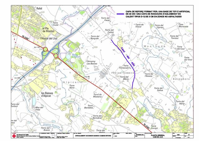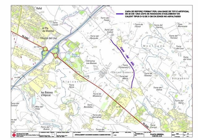 El projecte d’arranjament dels accessos a les Basses i camins de l’entorn, que té un pressupost de prop de 85.000 euros i un termini d’execució de 2 mesos, consisteix en l’adequació i millora de l’accés al Parc. Així, es preveu la millora del ferm d’una superfície aproximada de 700 metres quadrats i el reforç del paviment del camí de l’Albi que té una longitud total de 1.300 metres lineals i una amplada de 4,50 metres, concretament entre l’encreuament del camí del Burro i l’Autovia A-2, es preveu la millora del ferm. Aquest projecte compta a una subvenció del Pla Unic d’Obres i Serveis de la Generalitat.