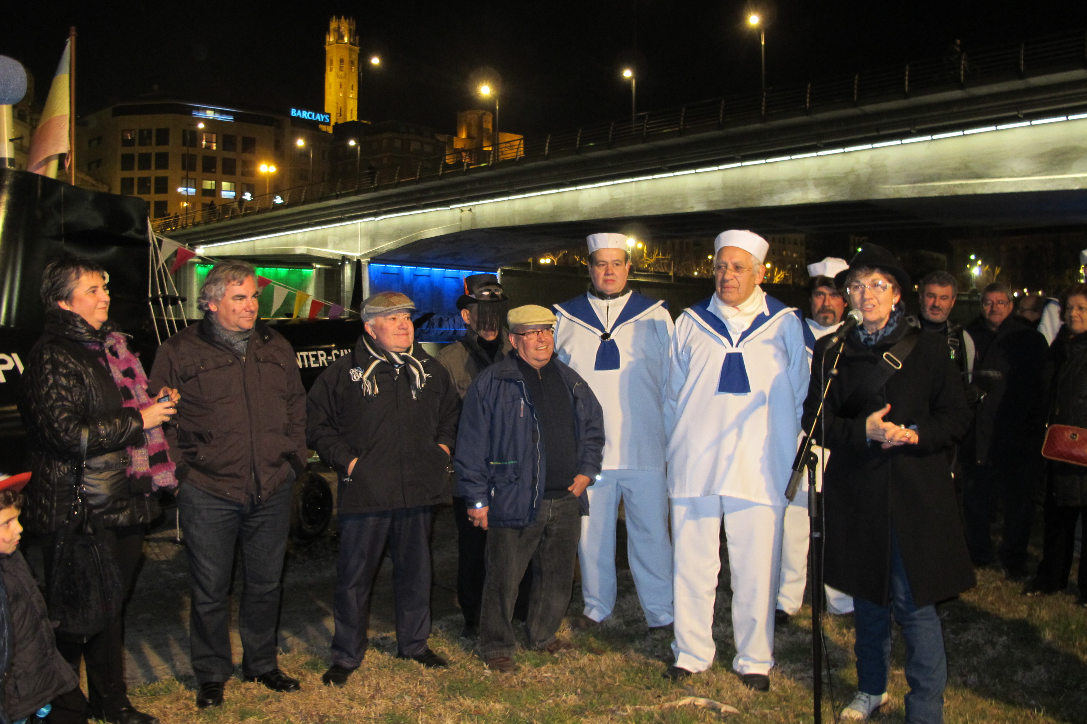 La Germandat Pau Pi avara un submarí al marge esquerre del Segre pel Carnaval
