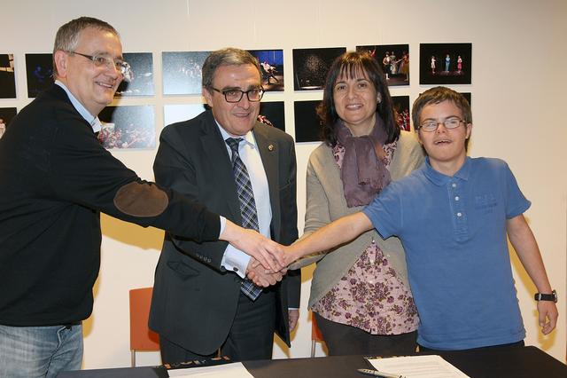 L’alcalde de Lleida i president de la Fundació Teatre de la Llotja, Àngel Ros i la presidenta de Down Lleida, Pilar Sanjuan, han signat un conveni de col•laboració que preveu la incorporació de persones amb síndrome de Down i altres discapacitats intel•lectuals de l’Associació Down Lleida, per realitzar accions i tasques de suport al web de la Fundació. L’acord se signa coincidint amb la celebració del Dia Mundial del Síndrome de Down.