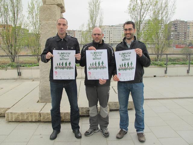 El regidor d’esports de l’Ajuntament de Lleida, Txema Alonso, acompanyat del vicepresident de l’Associació Atlètica Km0 de Ponent, Marc Feixas, i el cap de colla dels Castellers de Lleida, Samuel de la Fuente, han presentat aquest matí la marxa més popular de Ponent, que tindrà lloc el proper dia 15 d’abril al matí.
