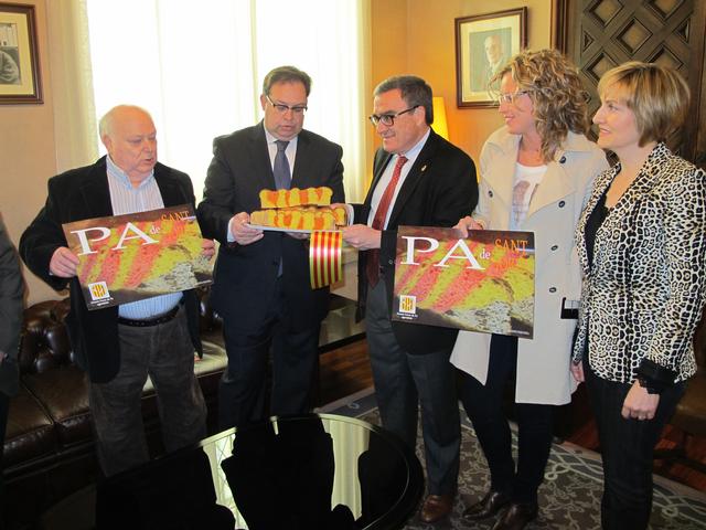 El Gremi de Forners de les Terres de Lleida ha visitat aquest matí l’alcalde de Lleida, Àngel Ros, amb motiu de la presentació del Pa de Sant Jordi que cada any elabora per commemorar aquesta Diada. La presentació també ha comptat amb l'assistència de la tinenta d'alcalde, Montse Mínguez.