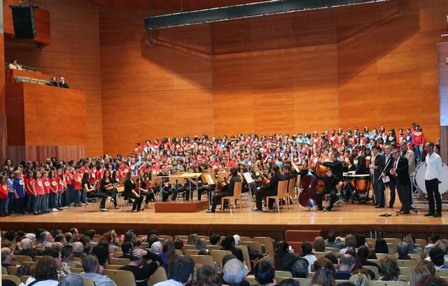 L’alcalde de Lleida, Àngel Ros, ha presidit avui la representació de la cantata escènica “Rostres”, amb música de David Esterri i lletra d’Enric Falguera i Jordi Prenafeta, a l’Auditori Municipal Enric Granados. Hi han participat 396 alumnes de cicle superior de 13 escoles de primària de Lleida, juntament amb l’Orquestra Simfònica del Conservatori Municipal de Música de Lleida, dirigits per Dolors Ricart.