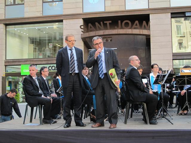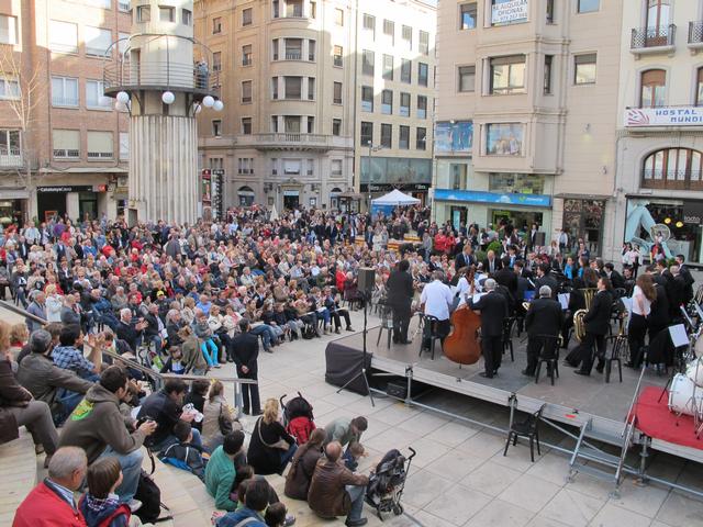 La música ha tornat a ser una de les protagonistes de la Diada de Sant Jordi. La Banda Municipal de Lleida ha estat present a la Diada amb el tradicional concert institucional, que ha ofert a la plaça de Sant Joan. L’alcalde de Lleida, Àngel Ros, ha assistit a l’actuació de la Banda amb la tinenta d'alcalde Montse Parra, i ha saludat el seu director, Amadeu Urrea.