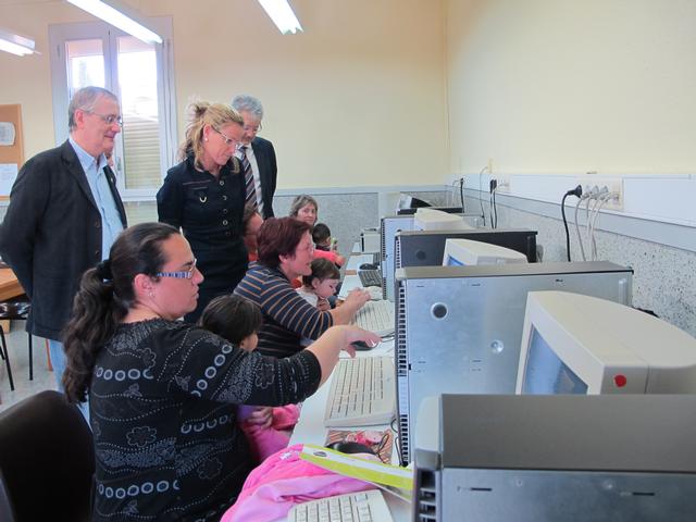 La tinenta d'alcalde i regidora d’Hisenda, Tecnologia i Projecció Exterior, Montse Mínguez, el regidor d’Educació i Atenció a la Infància, Jesús Castillo, i el regidor del barri de Magraners, Fèlix Larrosa, han visitat aquest matí el telecentre d’aquest barri on, amb el suport dels dinamitzadors tecnològics, els pares i mares han pogut tramitar on-line la preinscripció a les Escoles Bressol Municipals.