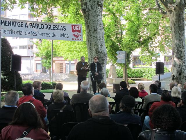 L’alcalde de Lleida ha participat en la tradicional ofrena floral al monòlit de Pablo Iglesias, fundador del sindicat, que està situat als Camps Elisis. Ros també ha pres part de l’homenatge que la UGT, amb la seva secretària general, Rosa Palau, al capdavant, ha fet als seus afiliats. Per una banda, als que porten 25 anys al sindicat, i per l’altra, als qui enguany es jubilen. En total, l’homenatge l’han rebut una cinquantena de sindicalistes.
