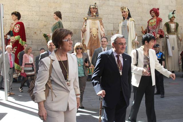 L’anada a ofici, amb els gegants de la ciutat al capdavant, ha sortit de la plaça de la Paeria cap a la Catedral, amb l’alcalde presidint el seguici. Els macers, la bandera de la ciutat, les pubilles, els heralds i els signífers, les trampes, el penó i la Banda Municipal han protagonitzat la desfilada.