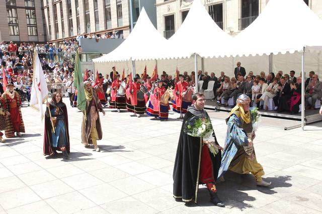 Un cop s’ha arribat a la plaça, s’ha fet una ballada conjunt de tots els elements festius i el bisbe de Lleida ha fet una salutació a la ciutadania, convidant els lleidatans a gaudir de la festa. Tot seguit, s’ha procedit a l’ofrena de roses vermelles de la pubilla i l’ofrena de les entitats, així com de tota la ciutadania que hi ha volgut participat.