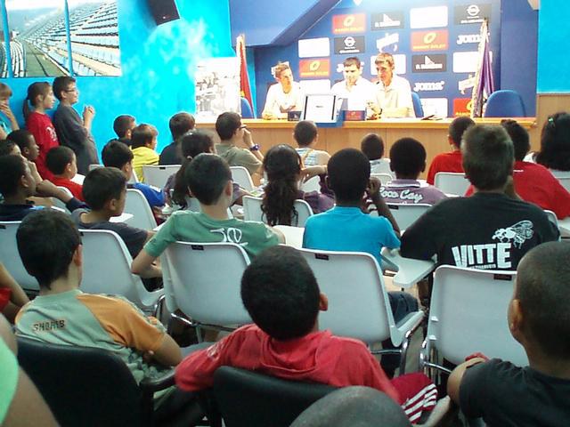 Després del recorregut, l’entrenador del Lleida Esportiu, Emili Vicente, i un dels jugadors de l’equip lleidatà, Miki, han rebut els infants d’Educasport a la sala de premsa, permetent que els joves conversessin amb ells i els fessin preguntes sobre la pràctica de l’esport que comparteixen. De fet, aquesta activitat s’ha organitzat incentivar la pràctica esportiva, promoure la seva participació en accions de ciutat, i alhora donar a conèixer els recursos esportius de la nostra ciutat.