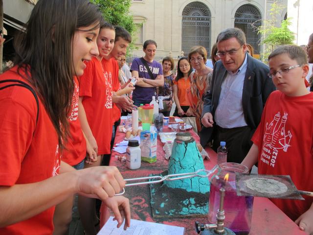 La ciència ha pres aquest dissabte els carrers de l’Eix Comercial de Lleida. Les exhibicions i els experiments científics han omplert amb parades el voltant de la Catedral Nova i l’Institut d’Estudis Ilerdencs, amb els més de 500 alumnes de 36 centres educatius de la demarcació que hi ha pres part en aquesta sisena edició. L’alcalde de Lleida, Àngel Ros, acompanyat de diversos regidors, ha assistit a la jornada, que com ha indicat l’alcalde, té com a objectiu divulgar i despertar vocacions científiques. Ros ha remarcat que un país es fa fort quan els seus ciutadans desenvolupen la ciència, l’art i la solidaritat, i ha agraït a la comunitat educativa l’esforç que fan amb els alumnes en aquest sentit.