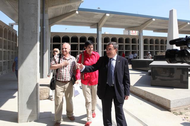 L’alcalde de Lleida, Àngel Ros, ha visitat aquest dijous la finalització de les obres de construcció de 416 nínxols que corresponen a la 3a fase del Departament de Sant Anastasi. A més, en el marc d’aquesta actuació, l’Ajuntament de Lleida ha reformat i rehabilitat la porta principal del cementiri municipal, que dóna a la rotonda de la LL-11. Aquestes dues actuacions, que han anat a càrrec de l’empresa Arnó, ha comptat amb un pressupost d’uns 540.000 euros.