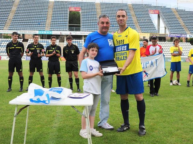El Camp d’Esports ha estat l’escenari aquesta tarde del triangular solidari “Ningú fora de joc”, que celebra ja la tercera edició. El regidor d’Esports, Txema Alonso, ha participat en aquest partit benèfic, organitzat per l’Associació Agrupa’t, amb el suport de la Paeria, entre altres entitats col·laboradores. Els equips que han jugat aquest triangular estaven formats per una selecció del SD Huesca, una selecció de jugadors de Primera i Segona Divisió A, i el Lleida Esportiu. El col·legiat lleidatà, Xavier Estrada, ha arbitrat aquest partit, que ha recaptat diners amb l’entrada simbòlica de 5 euros, per tirar endavant projectes de l’entitat que estan en perill per la situació econòmica actual.
