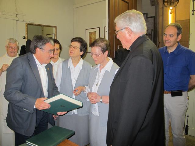 L’alcalde de Lleida, Àngel Ros, acompanyat del tinent d’alcalde i regidor de Benestar Social i Ocupació, Josep Presseguer, i de la regidora de Drets Civils, Cooperació i Igualtat, Maria Rosa Ball, ha felicitat la Superiora General, Purificación Ramos, i tota la comunitat religiosa per aquesta efemèride, i l’ha obsequiada amb el llibre dels Usatges. Durant el transcurs de la celebració, a més, l’alcalde ha anunciat que proposarà al Ple l’atorgament de la Placa de la Ciutat a aquesta entitat.