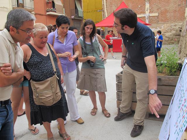 La tinenta d’alcalde i regidora d’Urbanisme, Marta Camps, acompanyada del regidor de Joventut, Oriol Yuguero, i dels representants veïnals i dels comerciants del barri, ha assistit aquest dissabte a la trobada que s’ha fet en aquest solar entre els veïns, els joves del barri antic (Jounits) i els participants en ell camp de treball Coopera, organitzat per la Generalitat de Catalunya i la Fundació Josep Carol amb joves provinents de diferents indrets de Catalunya. La trobada ha servit per impartir un taller per aportar idees i propostes d’ús en aquest solar.