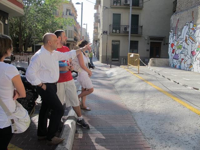 L’alcalde accidental, Rafael Peris, ha visitat aquest matí l’aparcament per a motocicletes del carrer Nord, on l’artista Blai Baules ha realitzat un grafit durant la darrera setmana. L’il•lustrador, que ja ha finalitzat el seu treball, ha arranjat la paret mitgera de l’aparcament amb una obra que dóna vida a aquest nou espai públic.