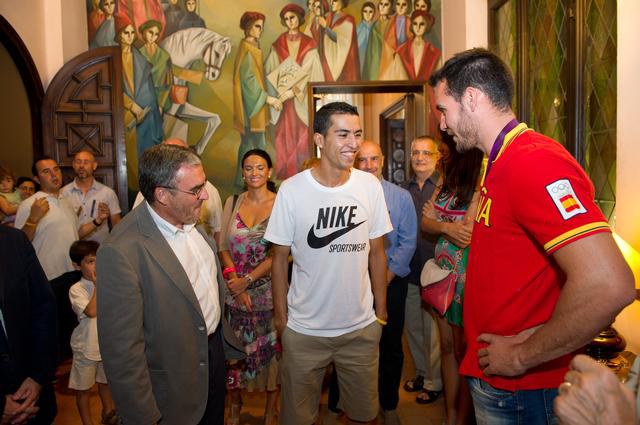 Lleida fa pinya per homenatjar el palista Craviotto, medalla de plata als Jocs Olímpics de Londres Àngel Ros i la Corporació Municipal reben el piragüista lleidatà i l'atleta Abdelaziz Merzougui, participant en la prova dels 3.000 metres obstacles
