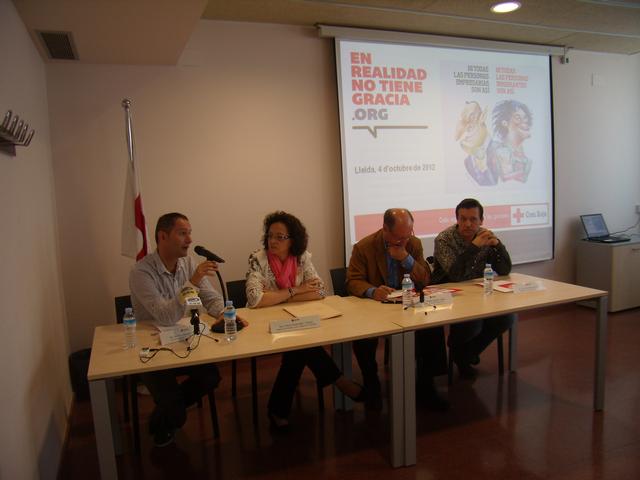 La Regidora de Drets Civils i Cooperació, Maria Rosa Ball, juntament amb el President de la Creu Roja, Mariano Gomà, ha assistit a l’acte de presentació de la Campanya “En realitat no té gràcia”. La iniciativa, promoguda per Creu Roja, compta amb el recolzament de l’Ajuntament de Lleida i utilitza l’humor com a eina principal de sensibilització i de reflexió sobre les dificultats socials i culturals que tenen moltes persones immigrants per accedir a un lloc de treball.