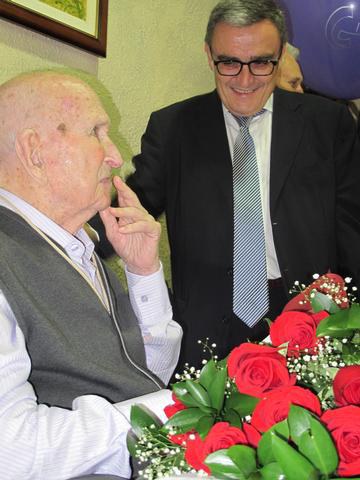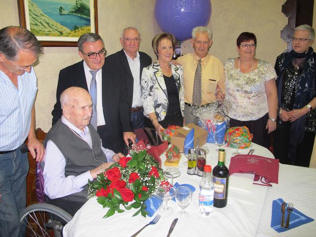 Germán González va fer ahir els 100 anys i avui ho ha celebrat en un dinar familiar. González, nascut a Olmedilla de Alarcón, a Conca, viu a Lleida amb la seva filla Pilar, a qui l’alcalde també ha felicitat pel seu sant. Els altres seus dos fills, juntament amb els 8 néts i 10 besnéts, l’han acompanyat en aquest dia tan especial per a tots.
