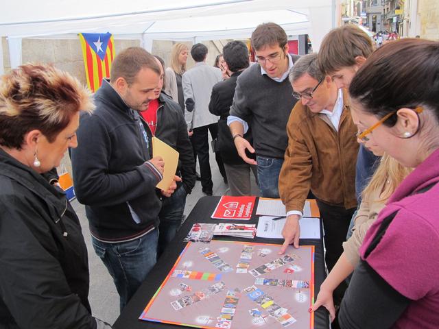 El Consell Local de la Joventut de Lleida, CLJL, integrat per diferents entitats juvenils de la ciutat, ha sortit al carrer en aquesta tercera edició de la Fira Juvenil d’Entitats per mostrar a la ciutadania la riquesa del conjunt associatiu juvenil de la ciutat. L’alcalde de Lleida, Àngel Ros, acompanyat dels regidors Oriol Yuguero i Fèlix Larrosa, ha visitat aquest migdia els estands de la fira i ha saludat els membres de les entitats participants. En total, s’hi han aplegat 14 carpes, davant la Catedral, que durant tot el dia oferiran activitats a partir d’un eix comú que gira entorn de la precarietat juvenil.