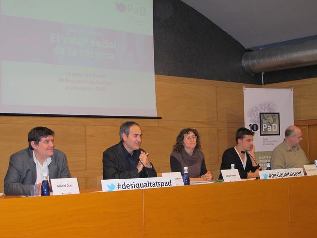 La Fundació Jaume Bofill i la Xarxa d’entitats socials d’atenció a les necessitats bàsiques de Lleida han presentat aquesta tarda el Panell de Desigualtats socials a Catalunya, en el seu 10è aniversari. El tinent d’alcalde i regidor de Benestar Social, Josep Presseguer, acompanyat del regidor d’Educació, Jesús Castillo, ha presidit l’acte en què s’han aportat dades sobre les desigualtats socials al nostre país i la seva evolució al llarg dels temps. El PaD és una enquesta longitudinal que, des del 2001, permet una mirada única sobre la realitat social de Catalunya i aportar dades sobre les desigualtats socials, la seva evolució al llarg del temps i contribuir a millorar el disseny de les polítiques socials en favor d’una major igualtat i justícia.
