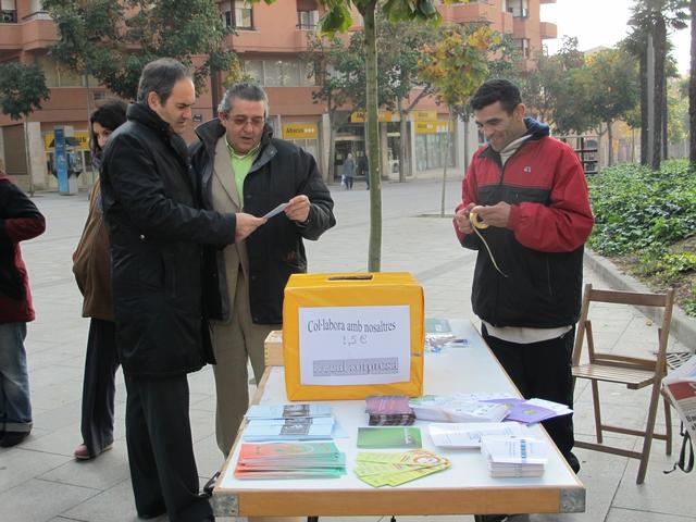 El tinent d'alcalde Josep Presseguer visita la taula informativa que l’entitat ha posat a la plaça Cervantes