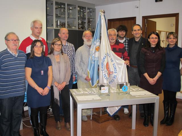 El tinent d’alcalde Josep Presseguer ha assistit al sorteig amb David Falguera, president de la Llar de Persones Sordes de Lleida; Benet Muñoz, president de FESC (Federació Esportiva de Sords de Catalunya); Lídia Sánchez, del comitè del 34è campionat Esportiu de Sords de Catalunya, i Juan Rafael Solans, president del Club Esportiu de Sords de Lleida.