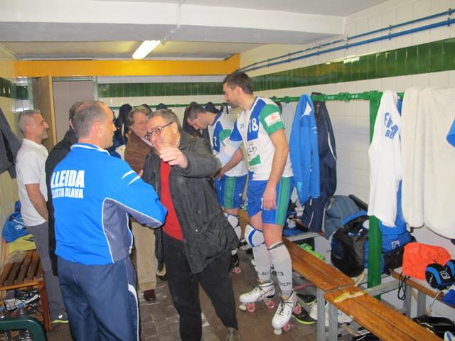 L’alcalde de Lleida, Àngel Ros, ha gaudit amb l’afició de la victòria dels lleidatans. Ros, amb els regidors Txema Alonso, Joan Ramon Zaballos i Paco Cerdà, i el president del club, Enric Duch, ha baixat al vestidor de l’equip per felicitar els jugadors i l’entrenador, Albert Folguera, per la victòria i ha desitjat un bon nadal a tots.