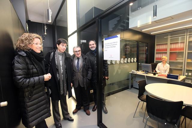 L’alcalde de Lleida, Àngel Ros, acompanyat dels tinents d’alcalde, Marta Camps, Josep Presseguer i Montse Mínguez, ha presentat aquest dimarts la nova oficina municipal que ha posat en marxa la Paeria per atendre a totes aquelles persones o famílies que es troben amb problemes de pagament de la hipoteca o del lloguer del seu habitatge habitual. Es tracta d’un servei integral d’assessorament i mediació que està ubicat a les dependències de l’Oficina Local d’Habitatge, al carrer Cavallers, número 14.