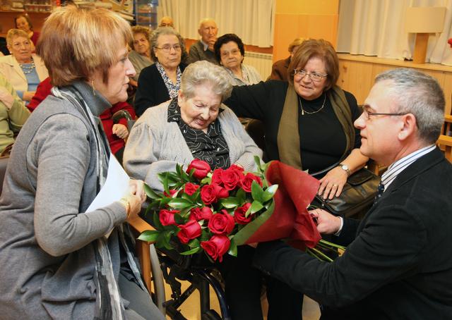 La regidora de Participació Ciutadana, Gent Gran i Voluntariat Sènior, Dolors Arderiu, i el regidor de Coordinació de Barris, Joan Gómez, han felicitat aquest matí Tomasa Sampar, amb motiu del seu 100 aniversari. L’homenatjada ha celebrat els seus 100 anys a la residència, acompanyada dels seus familiars i els companys i els amics del centre. Els regidors han lliurat un ram de flors a la Tomasa, qui també ha rebut la medalla centenària de la Generalitat.