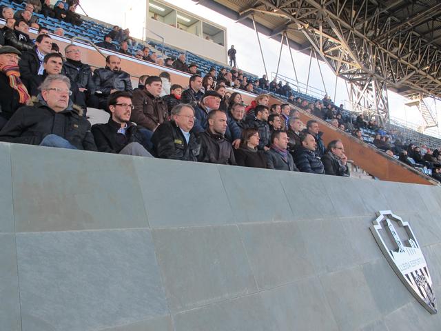 Els regidors Txema Alonso, Fèlix Larrosa, Paco Cerdà i Toni Postius han animat l’equip de la Terra Ferma des de la llotja, amb el president del club, Albert Esteve.