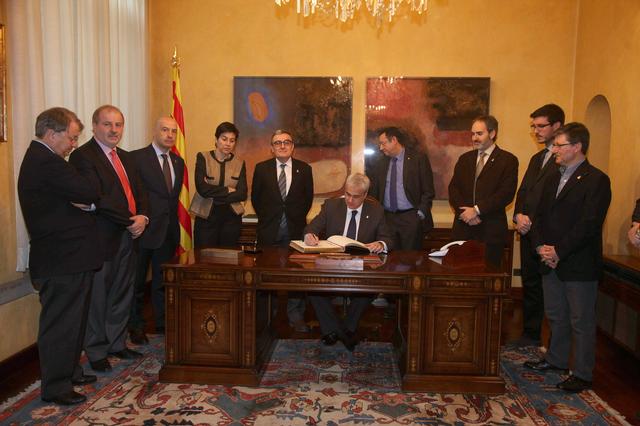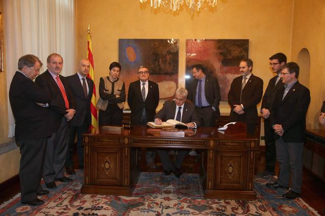L’alcalde de Lleida, Àngel Ros, ha rebut el conseller de Justícia de la Generalitat, Germà Gordó. El conseller ha firmat el Llibre d’Or de l’Ajuntament de Lleida on ha expressat l’”emoció” que li produïa aquesta visita institucional a la Paeria. Tant el paer en cap com Gordó han assenyalat que estan segurs del “diàleg profitós” que existirà entre les dues institucions. L’alcalde ha mostrat al conseller el saló de sessions i el del Retaule i li ha lliurat un exemplar del Llibre dels Usatges. A l’acte han assistit representants de la Corporació municipal.