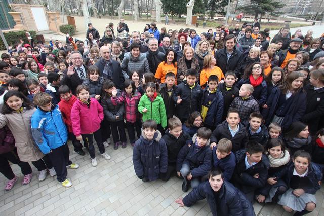 Un centenar d'infants de diferents escoles de Lleida construeixen una lluna gegant que es lliurarà el proper 1 de març a l'Associació de Familiars i Amics de Nens Oncològics de Catalunya