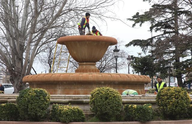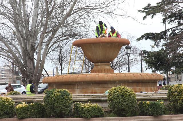 L’Ajuntament de Lleida està duent a terme la millora de la font de la plaça de la Pau amb la rehabilitació dels vasos i els sistemes hidràulics i elèctrics