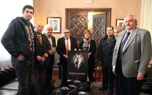 L'alcalde de Lleida, Àngel Ros, acompanyat de la tinenta d'alcalde i regidora de Política Cultural, Montse Parra, ha rebut aquest migdia representants de la Congregació de la Puríssima Sang i representants de la Congregació dels Dolors amb motiu de la celebració de la Setmana Santa a Lleida i de la presentació del cartell il·lustrador de la festivitat, obra del fotògraf Jordi V.Pou.