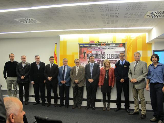 L’alcalde de Lleida, Àngel Ros, ha assistit avui a la presentació de la CX Cursa Bombers Lleida 2013, que se celebrarà el dia 7 d’abril i compta ja amb 2650 corredors adults inscrits i 600 nens i nenes en la cursa infantil que se celebra el dia 6. La cursa, que arriba aquest any a la 3ª edició, inclou activitats paral·leles com el Parc Infantil Solidari Lo Marraquet Bomber, que tindrà lloc al pavelló 3 dels Camps Elisis dissabte i diumenge, i el 1r Concurs d’Animació al carrer, amb 11 punts d’animació amb grups de batucades, dj, música en directe, teatre i música que donaran color a la cursa al seu pas per Lleida.