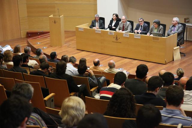 L’alcalde de Lleida, Àngel Ros, el rector de la UdL, Roberto Fernández, la directora del Centro Nacional de Innovación e Investigación Educativa del MECD, Maria Rodríguez, la Presidenta de la Real Sociedad Española de Física, Rosario Heras, el President de la Comissió de l’Olimpíada de la Real Sociedad Española de Física, Ramon Roman, i el President de la Societat Catalana de Física, Josep Enric Llebot, han posat el punt i final a aquest esdeveniment amb el lliurament de premis als guanyadors.
