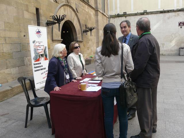 El regidor de Benestar Social i Ocupació, Josep Presseguer, ha saludat aquest matí als membres de la taula informativa que ha organitzat l’Associació Provincial de Laringectomitzats de Lleida amb motiu del Dia Mundial de la Veu.