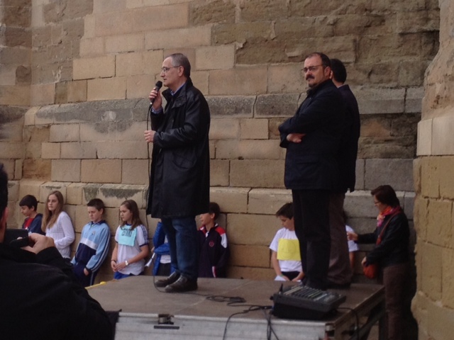 La trobada ha començat amb una abraçada que els alumnes han fet a la Seu Vella i després s’ha presentat l’acte, procedint a la lectura del manifest comú i d’uns poemes. Les Escoles que hi han participat han estat Pràctiques II, Joc de la Bola, Lestonnac i INS Ronda.
