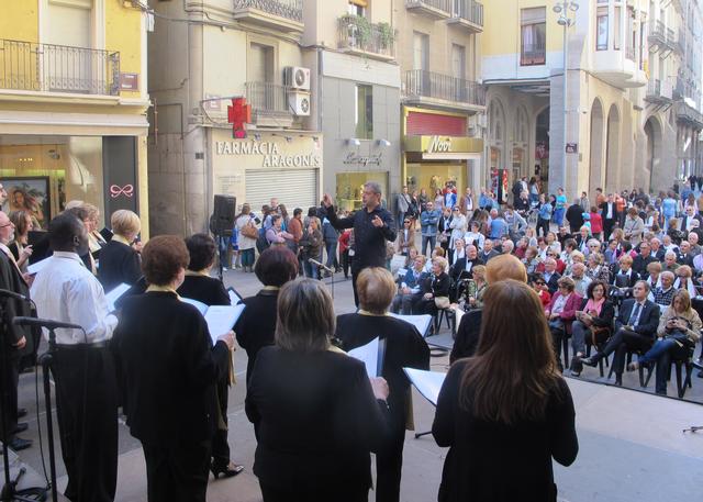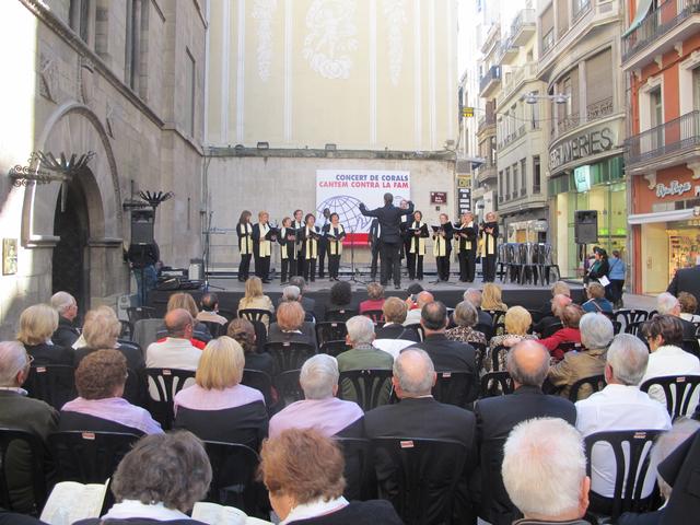Onze corals lleidatanes han fet sentir aquesta dissabte la seva veu en contra de la fam. L’Ajuntament de Lleida, a través de la Regidoria de Cultura, ha donat suport al tradicional concert benèfic promogut per Mans Unides i que des de fa tres anys organitza a la plaça de la Paeria. Els tinents d’alcalde Josep Presseguer i Montse Parra i les regidores M. Rosa Ball i Gemma Batalla han assistit al concert solidari que ha tingut una molt bona resposta de la ciutadania. Des de l’entitat Mans Unides, la seva presidenta i vicepresidenta a Lleida, Pilar Menéndez i Paquita Deltell, han explicat que enguany els diners recaptats es destinaran al projecte “L’educació no formal i el desenvolupament comunitari” de Newassa, a l’Índia.