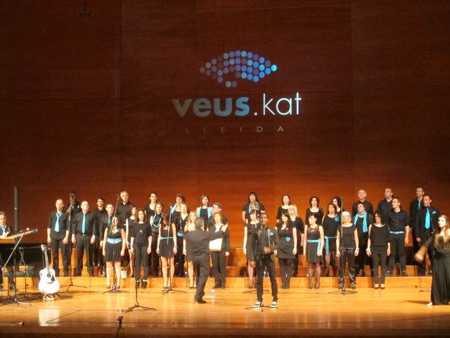 Veus.Kat és un grup de lleidatans que viuen la música i el cant i que, amb la col·laboració de l’Ajuntament de Lleida, s’han posat en marxa per oferir aquest primer concert a l’Auditori Municipal Enric Granados. El grup ha adaptat al català molts dels seus temes, sent una aposta clara i directa pel territori i per potenciar la cultura catalana arreu. Amb un estil propi i característic, han interpretat cançons com Happy Day o Ves-hi Moisès, entre d’altres, amb arranjaments del seu director musical, Pere Guixé. El repertori que han preparat per a l’ocasió ha estat ple d’energia i de força, com la que afirma tenir aquesta jove formació, fent gaudir d’allò més al públic assistent.