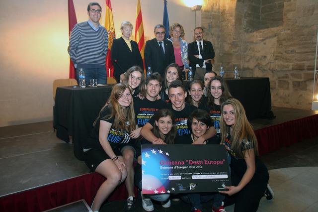- L’eurodiputada Maria Badia fa una crida a sentir-se part de la ciutadania europea- L’alcalde de Lleida ha anunciat que un cop finalitzades les obres de restauració del campanar de la Seu Vella, la bandera d’Europa lluirà de manera permanent al Turó- El Col·legi Lestonnac guanya la Gimcana Destí Europa, que per primera vegada se celebra al conjunt monumental de la Seu Vella