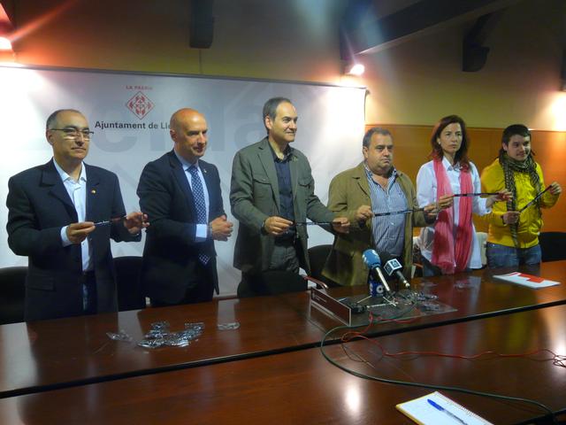 Lleida compta a partir d’avui amb la polsera més solidària: una polsera de tela amb la silueta de la ciutat que destinarà els diners recaptats en la seva venda a diversos projectes de Creu Roja i de Càritas de Lleida. El tinent d’alcalde i regidor de Benestar Social, Josep Presseguer, el tinent d’alcalde i regidor de Promoció Econòmica, Rafael Peris, el president de la Fecoll, Xavi Pérez, la vicepresidenta de Creu Roja de Lleida, Dolors Curià, i el representant de Càritas, Josep Anton de la Fuente, han presentat aquest matí aquesta iniciativa solidària, que neix de la Federació de Colles de l’Aplec del Caragol de Lleida -FECOLL.